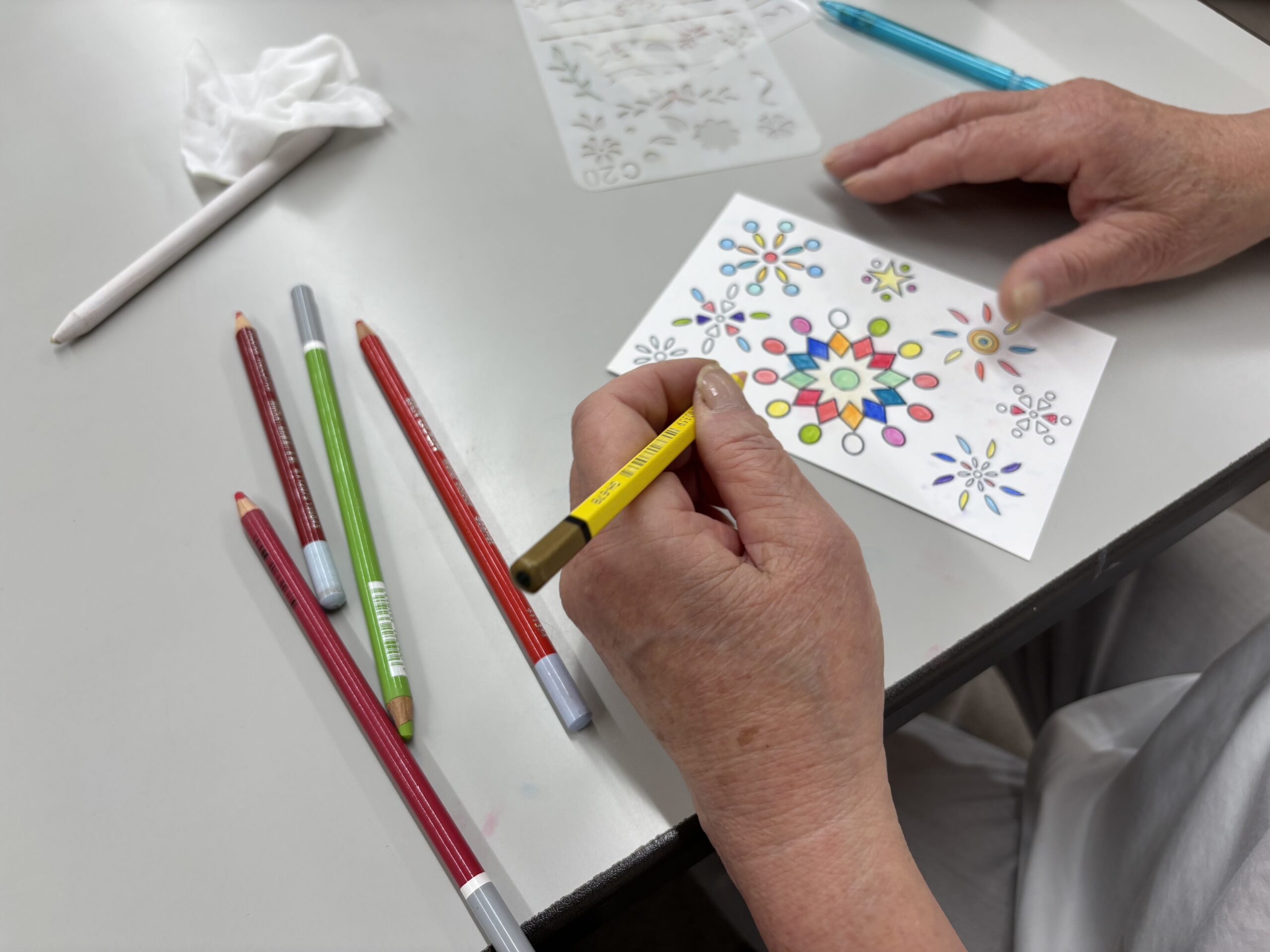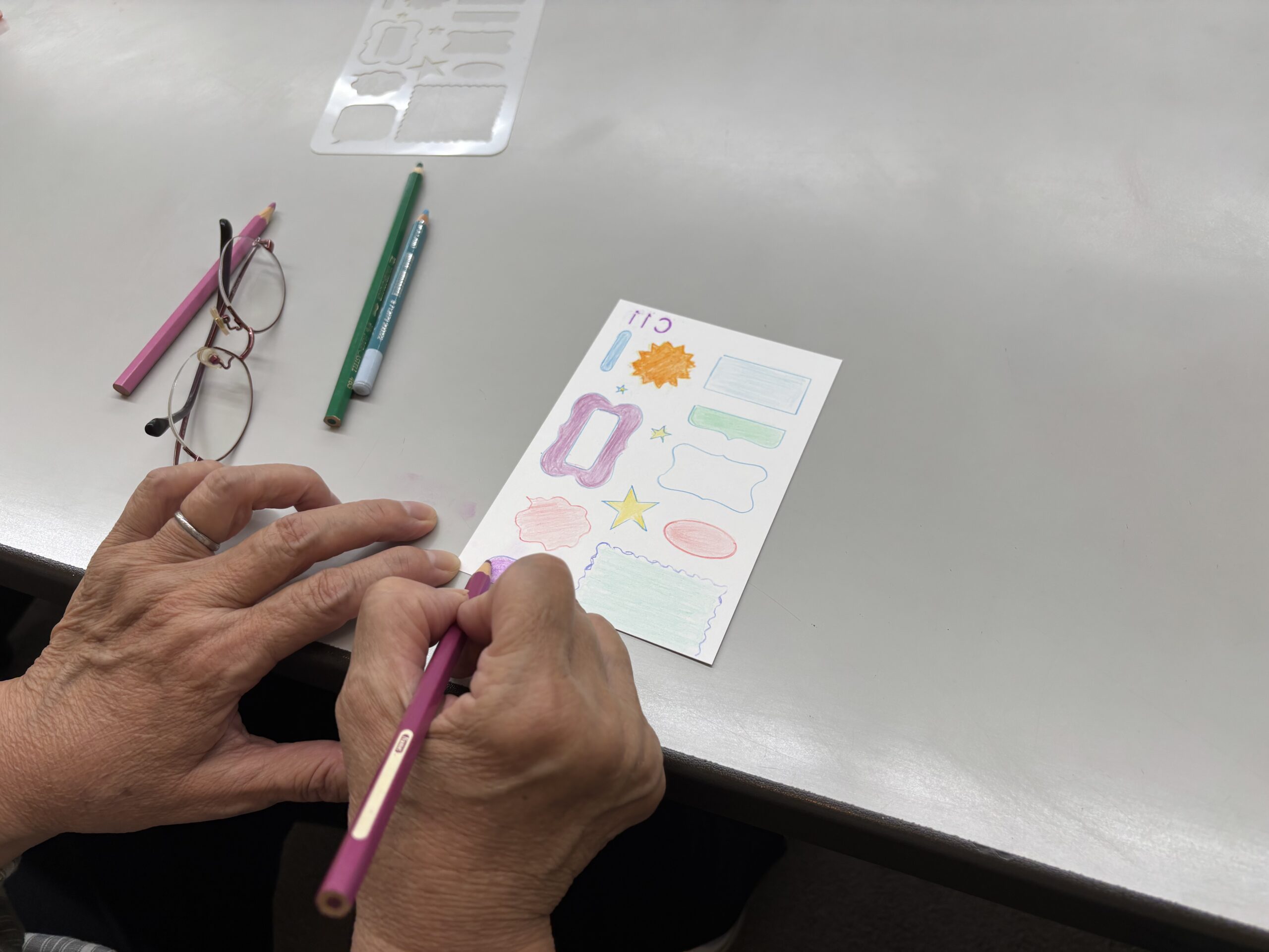 さまざまな紙と500色の色鉛筆でポストカードを楽しむ(くらしかん・朝起き会)